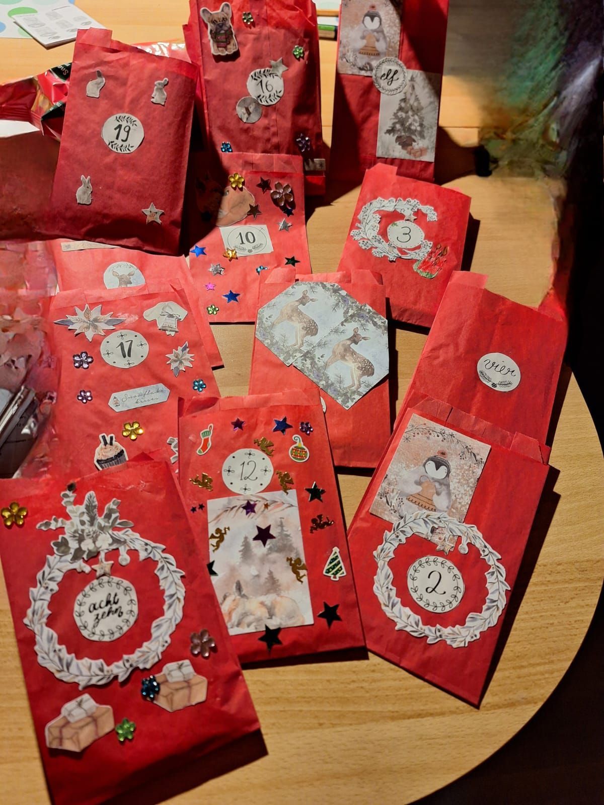 Auch in den Klassen wird es weihnachtlich. Die Kinder backen Plätzchen und genießen den Duft frisch gebackener Leckereien. Mit viel Freude dekorieren sie ihre Räume – mit kleinen Wichteln, selbst gestalteten Adventskalendern und traditionellen Adventskränzen. So entsteht in jeder Klasse eine individuelle und gemütliche Weihnachtsatmosphäre.