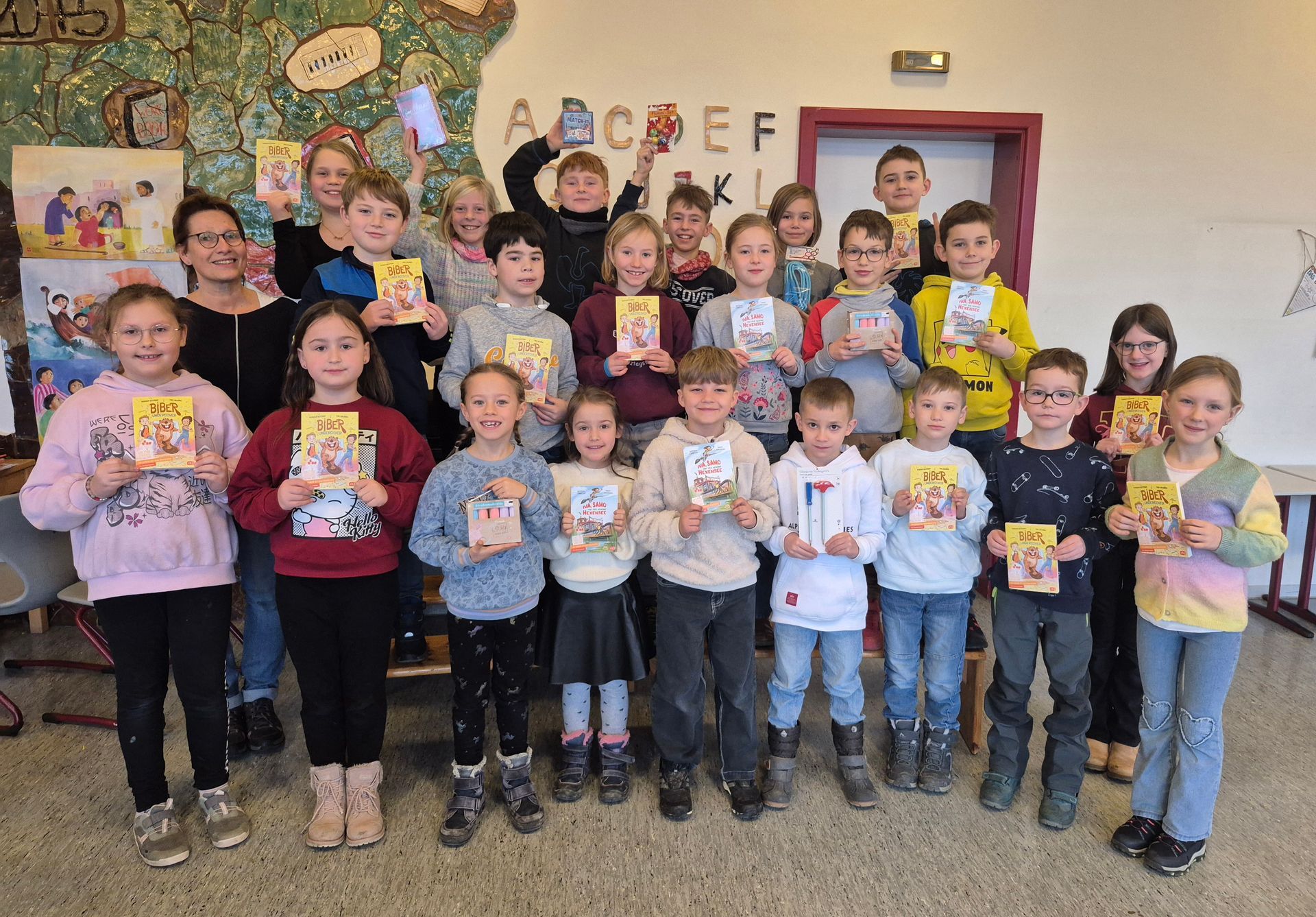 In der Adventszeit verwandelt sich unsere Grundschule in einen ganz besonderen Ort. Schon beim Betreten des Gebäudes spürt man die Vorfreude auf Weihnachten: In den Fluren stehen liebevoll geschmückte Weihnachtsbäume, die den Schulalltag festlich erhellen. In der Mitte des Schulgebäudes lädt eine große Krippe zum Staunen, Verweilen und gemeinsamen Innehalten ein.